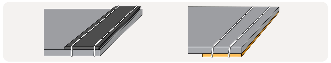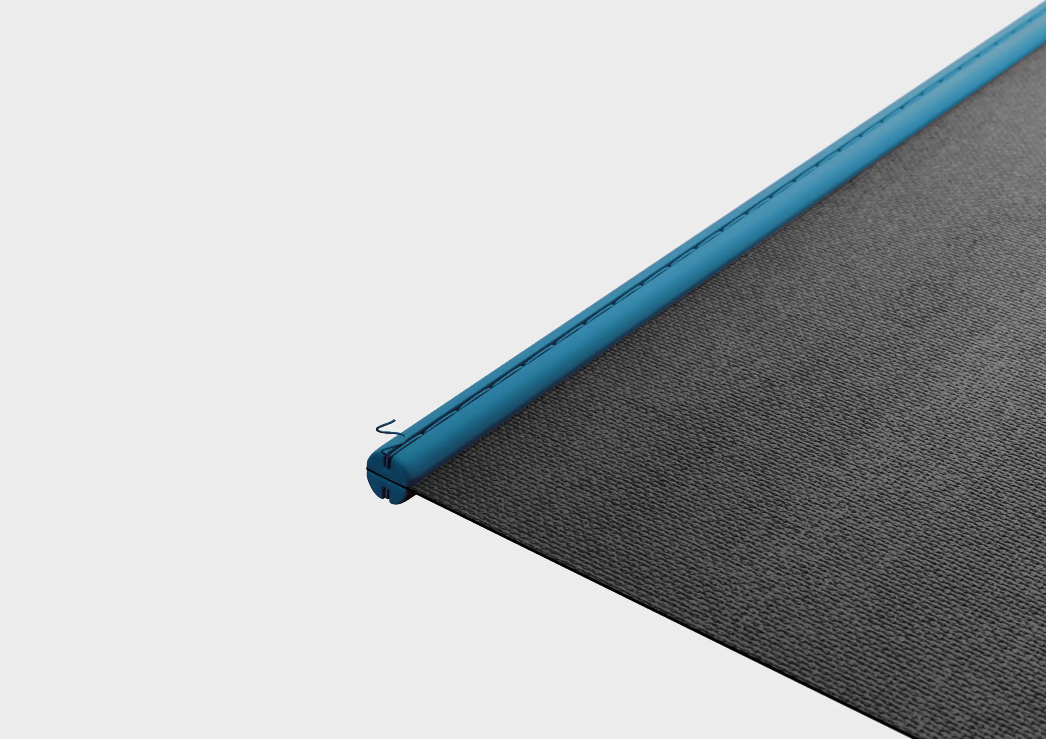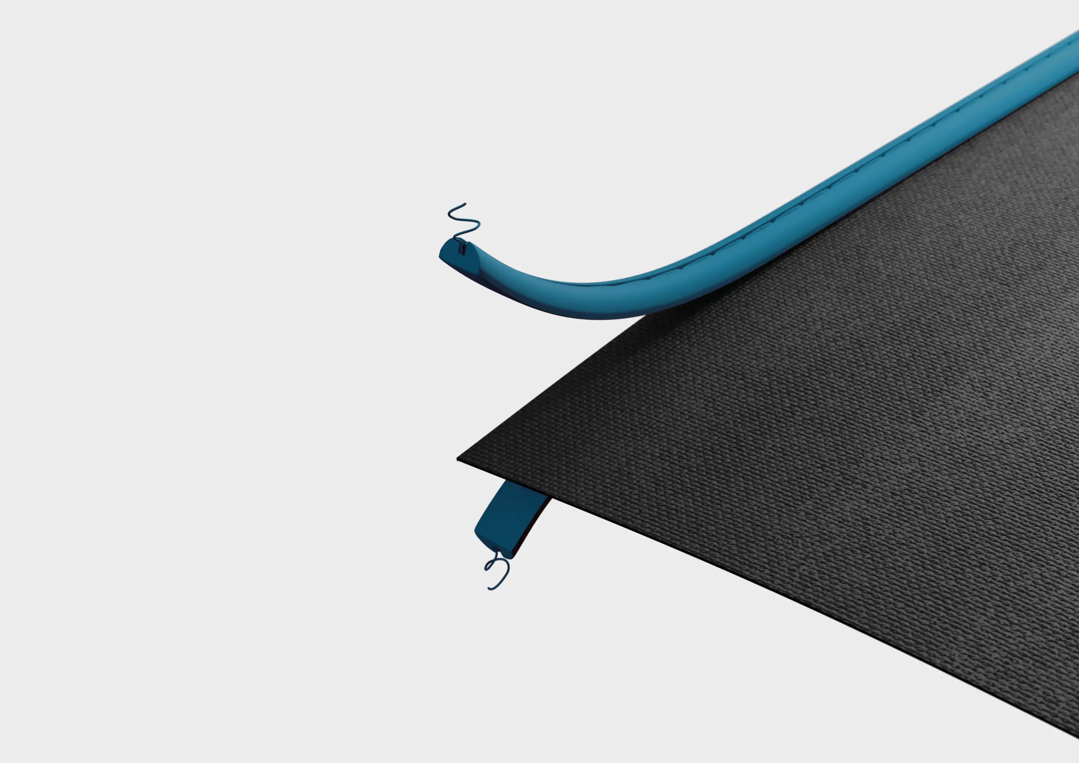 Der NonVi Twin besteht aus zwei Halbkedern mit Nut. Das Gewebe wird zwischen die Kederhälften geführt, vernäht und kraftschlüssig miteinander verbunden.