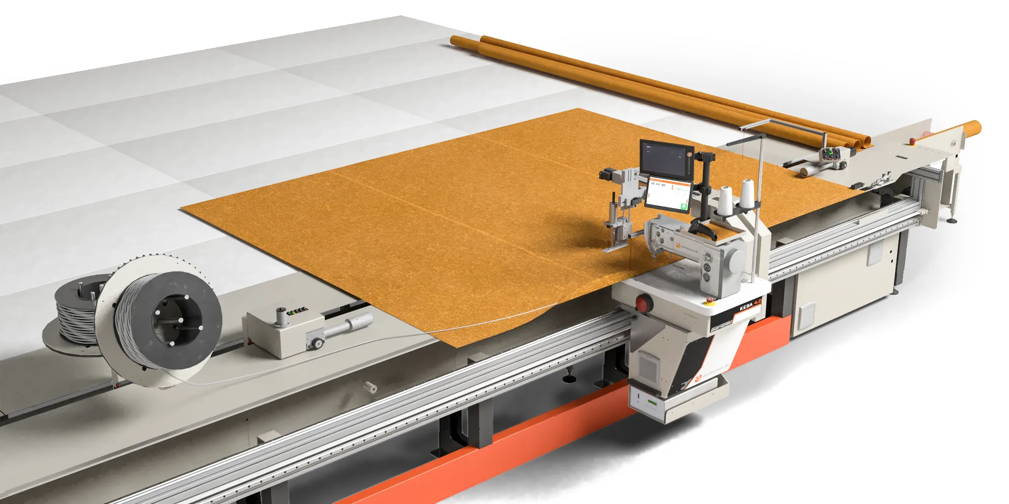 Die komplett neu konzipierte Kesa 4.0 zeichnet sich durch zahlreiche neue smarte Funktionen aus, mit denen die Verarbeitung eines technischen Textils, wie z.B. eines Markisentuchs oder Banners, vereinfacht und effizienter wird. Dabei werden hauptsächlich typische Randbearbeitungen durchgeführt, wie z.B. das Anbringen eines Kedersaums oder Hohlsaums, das Aufbringen von Klett- und Flauschbändern, Flachkedern oder von diversen anderen Kedern.