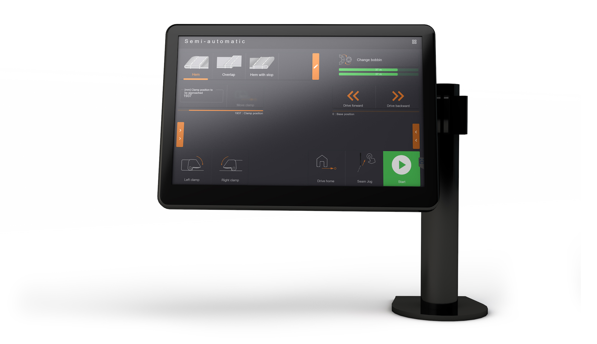 Die Länge des Restfadens der Spulen wird durch einen digitalen Stichzähler als Annäherung ermittelt. Die Prozessfreigabe ist von der Klammerposition abhängig.