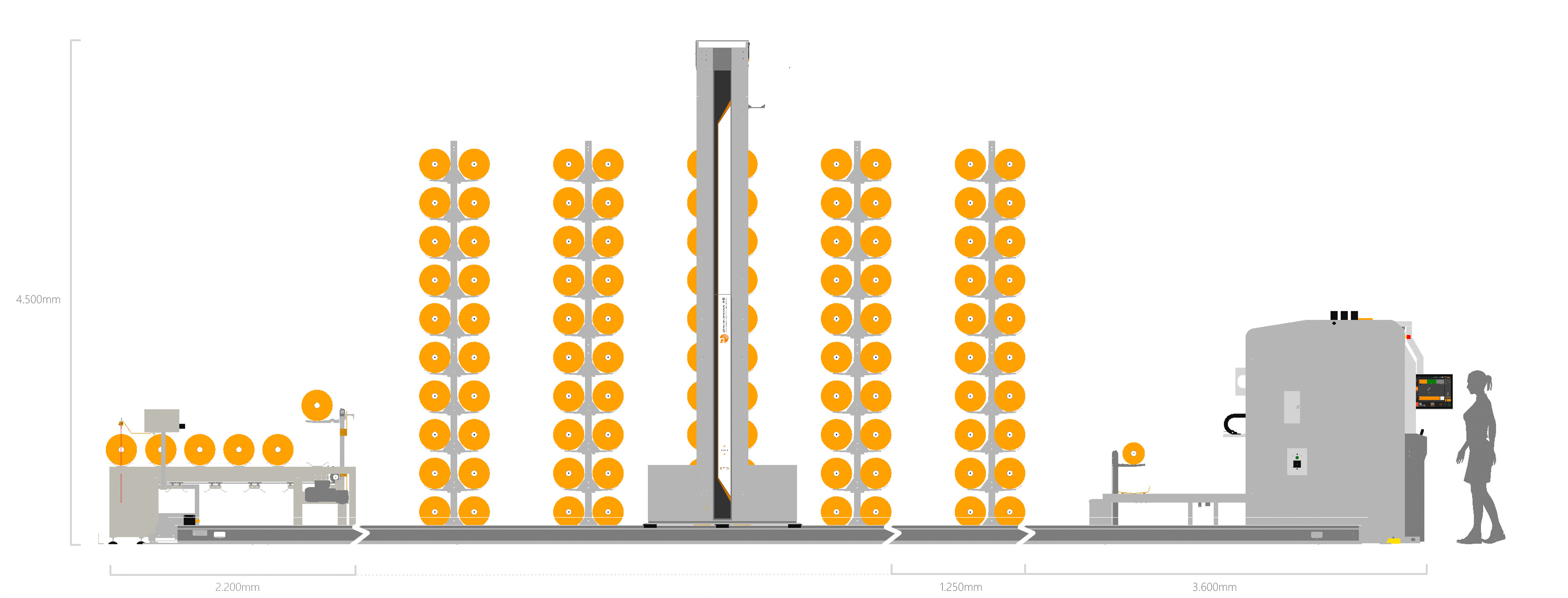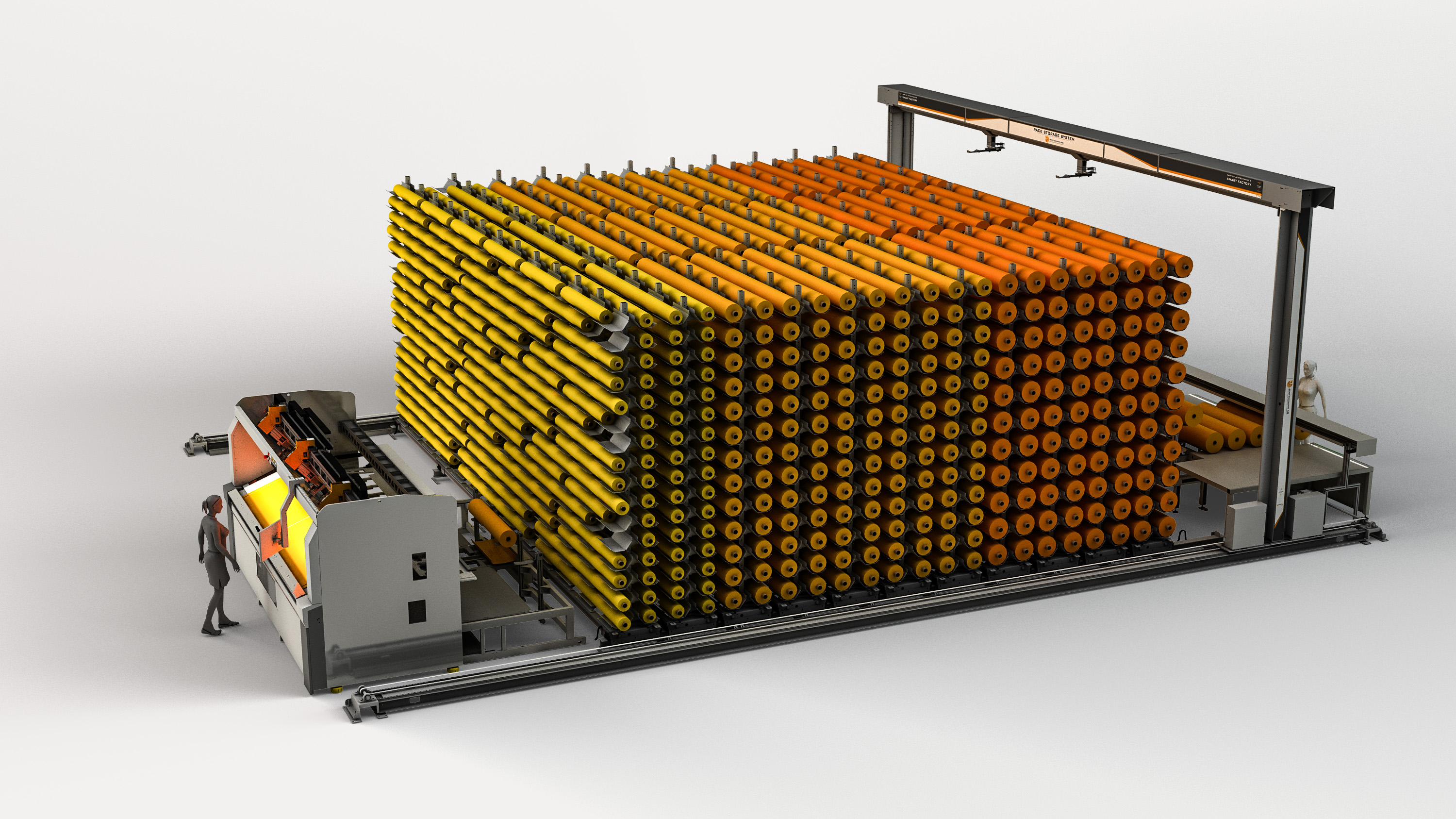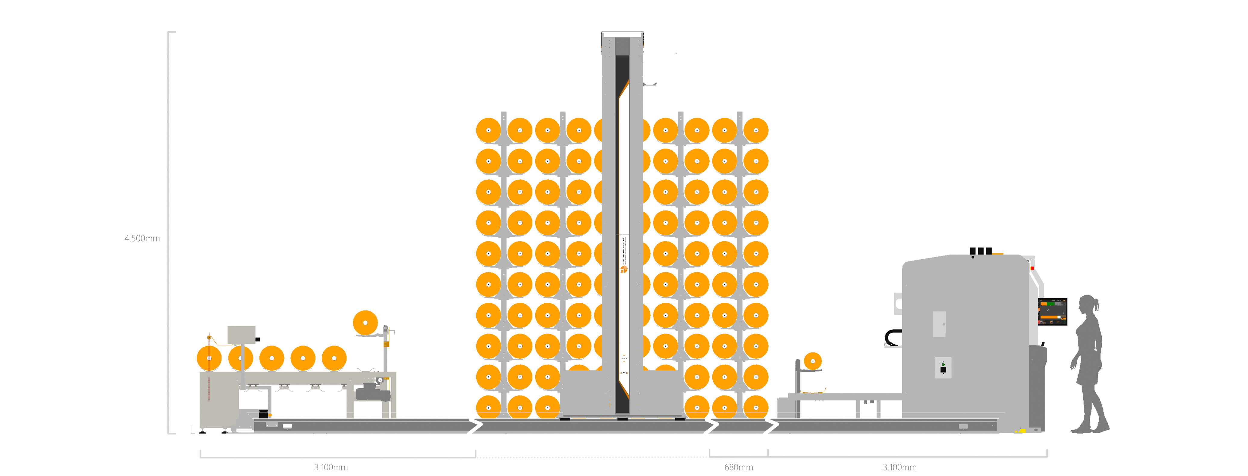 Das System arbeitet mit modernster Software und Servotechnik hochdynamisch und unabhängig zu der Zuschnittmaschine. Direkt an die ScreenCut gekoppelt arbeitet das System überlappend. So werden Ein- und Auslagerprozesse vom Lager dann vollzogen, wenn der Zuschnitt arbeitet und keine Rolle anfordert.