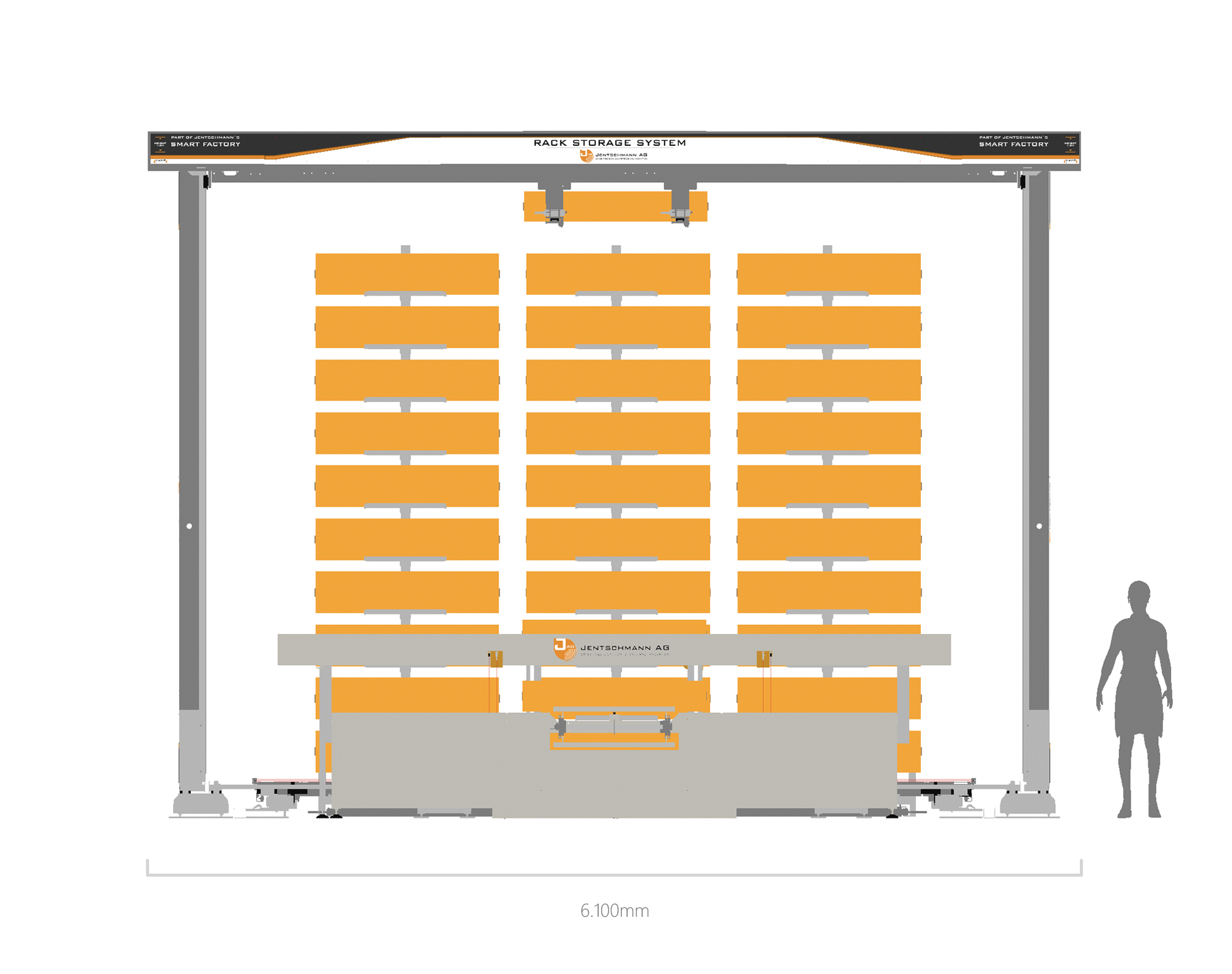 Das Jentschmann RegalLagerSystem RLS ist ein dynamisches Stoffballenlager mit automatischer Stoffballenbereitstellung direkt an die ScreenCut oder indirekt über eine Auslagerstation zu anderen Maschinen.