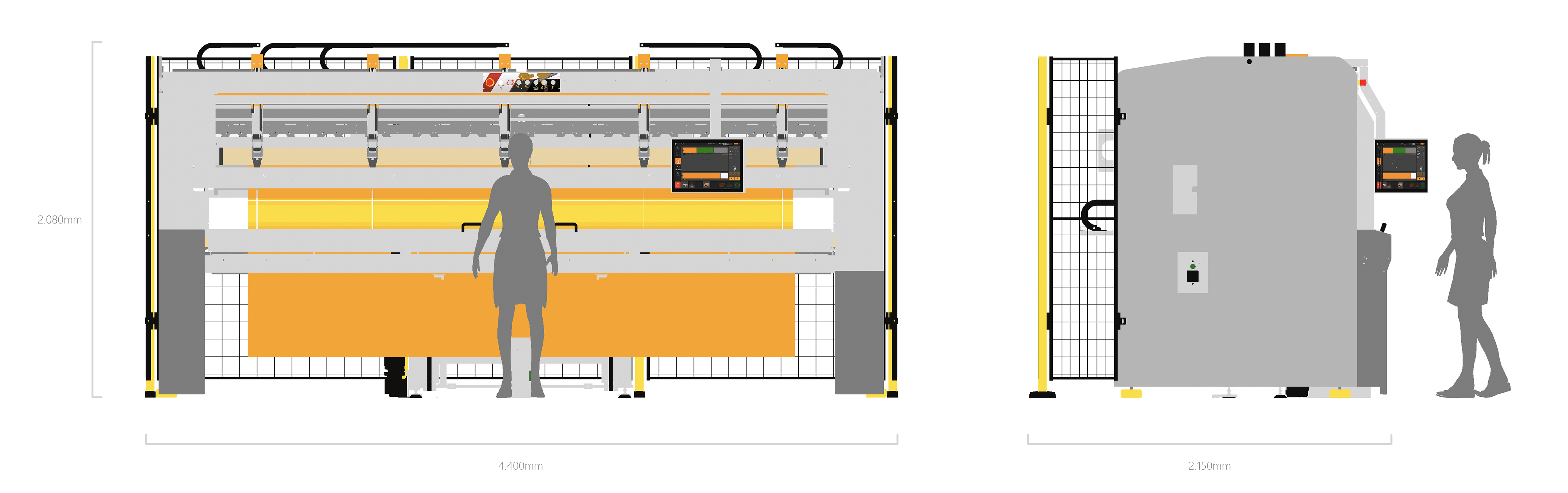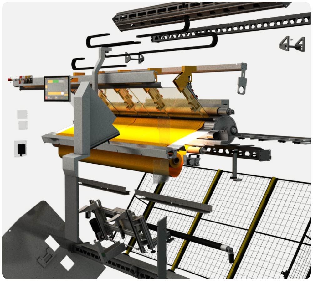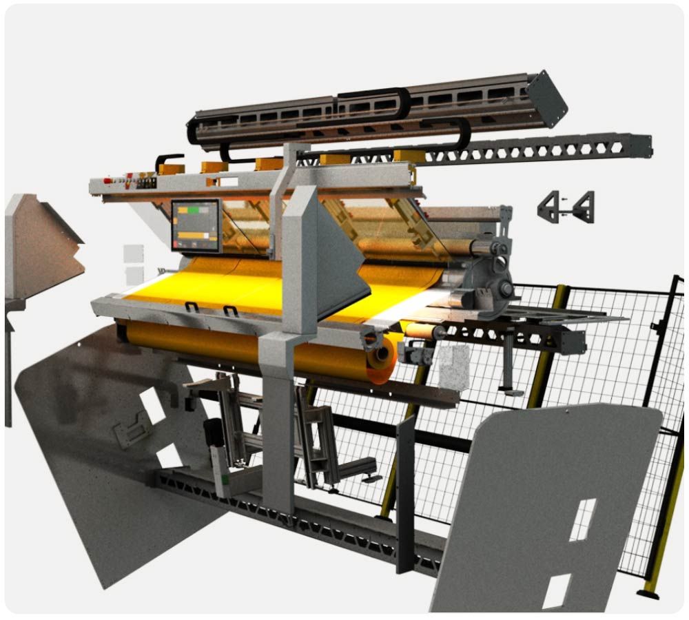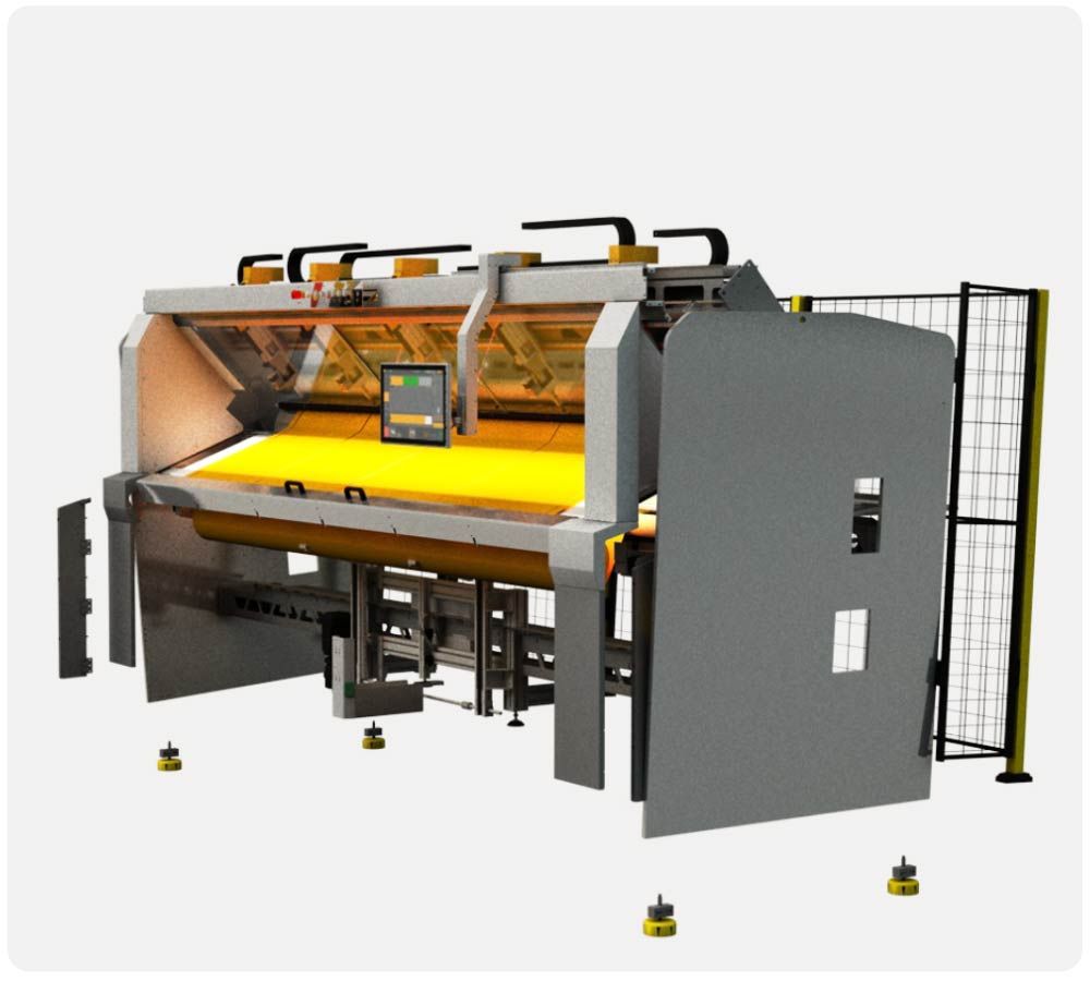 Schneidzyklus von nur 38 Sekunden inklusive Handling eines Screen-Tuchs mit der Durchschnittsgröße von H 2,4m x B 2m.