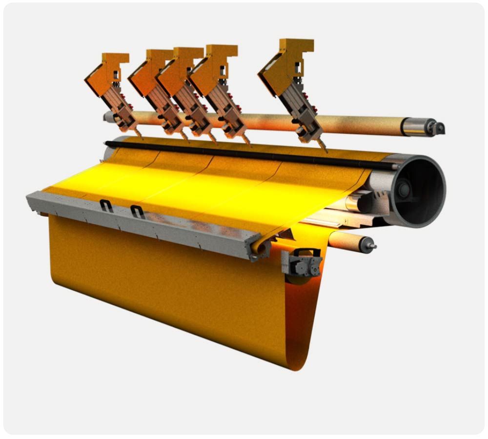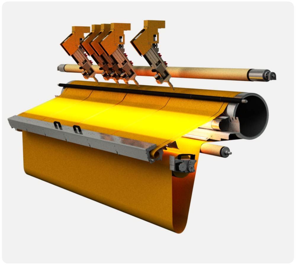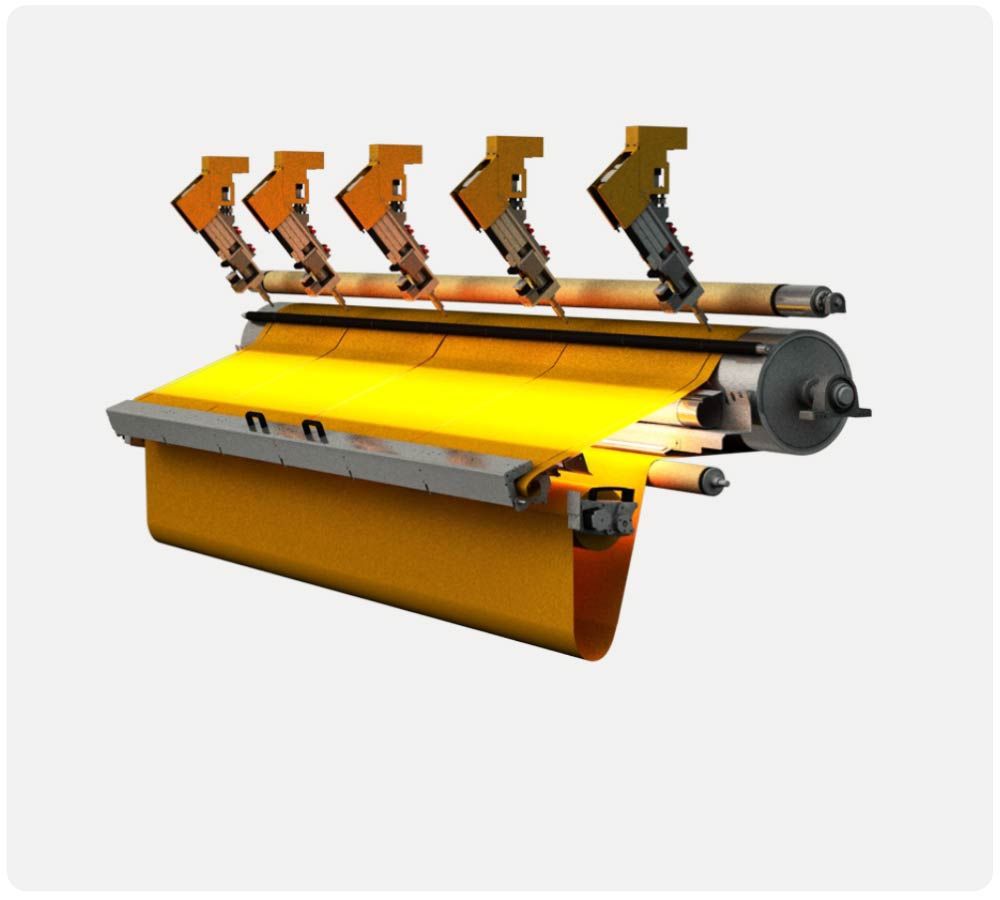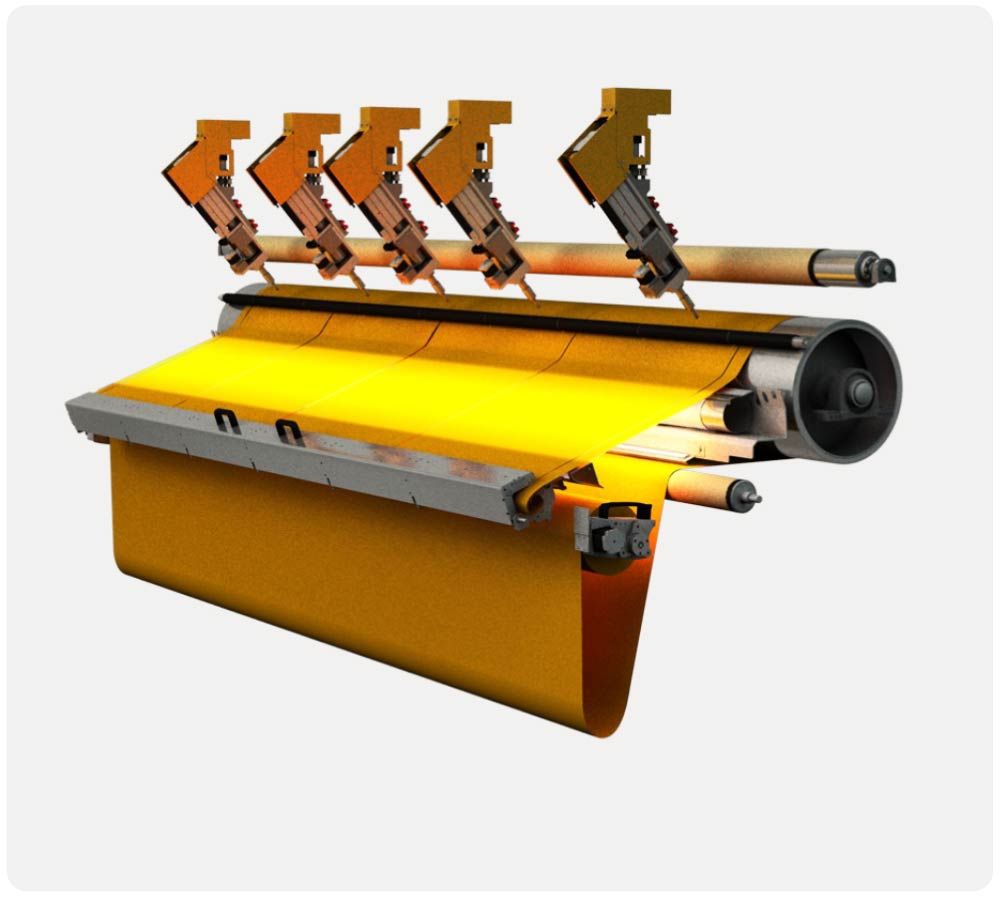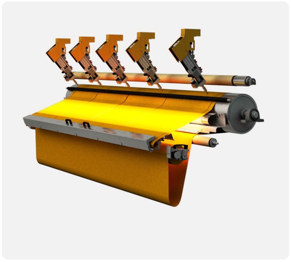 Um gleich mehrere Tücher gleichzeitig aus einer Rolle zu schneiden kann die ScreenCut mit bis zu 6 x Schneidköpfen ausgestattet werden.