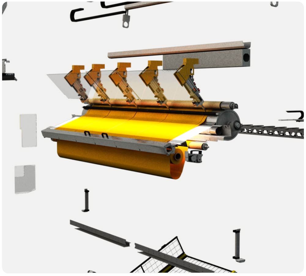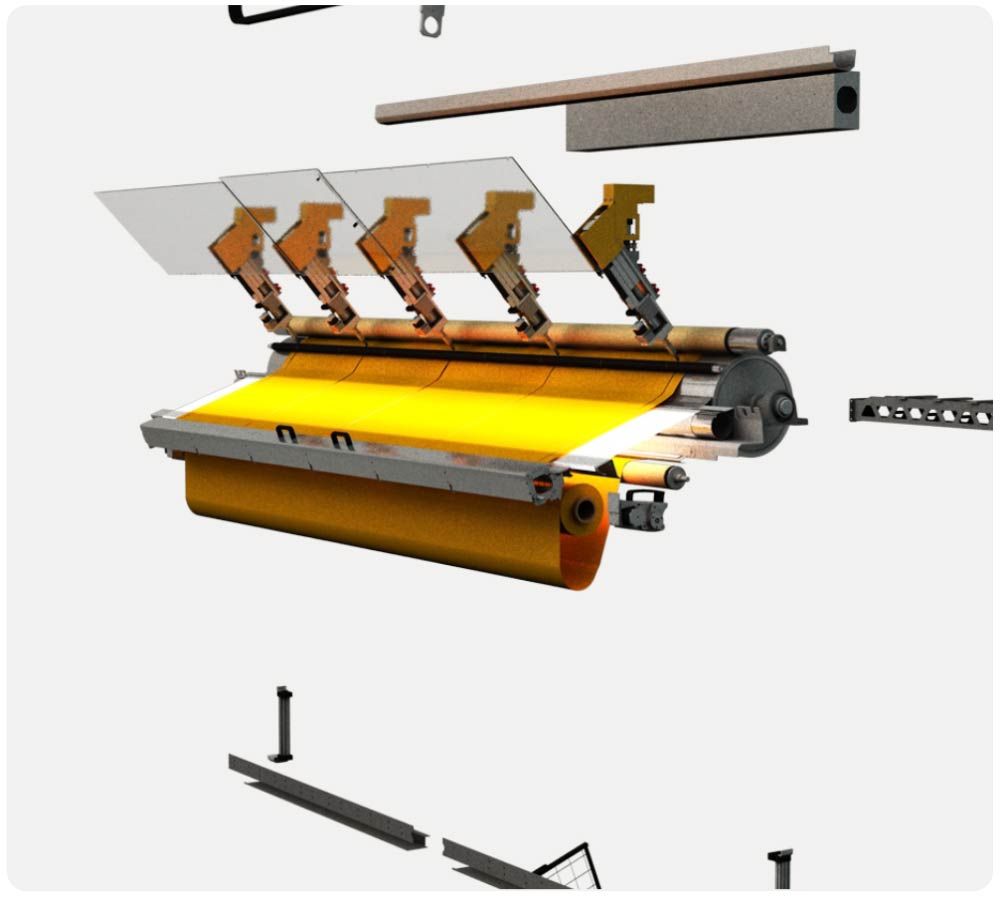 Das revolutionäre Design "Von-Rolle-In-Rolle" erlaubt eine signifikante Steigerung der Produktionskapazität bei gleichzeitig sehr geringem Platzbedarf von nur 9m².