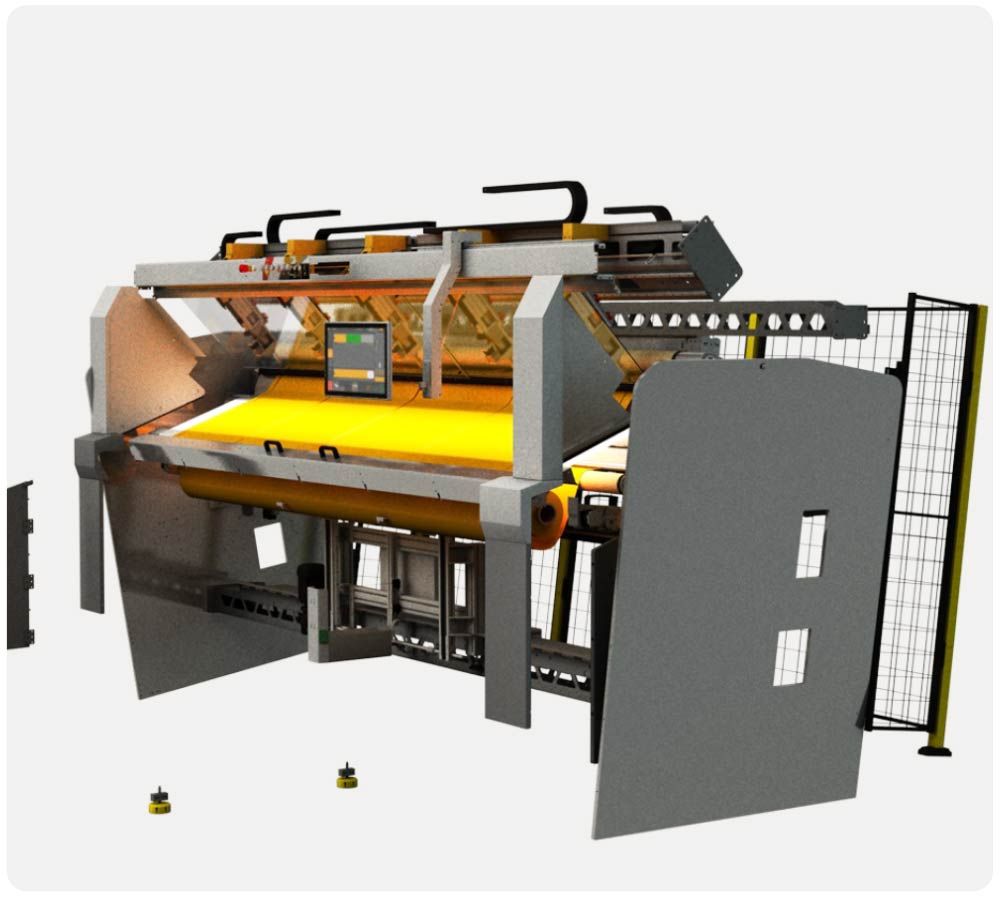 Somit entstehen kaum Wartezeiten, da bereits die nächste Rolle vom RLS in den Stoffrollenwechsler geladen werden kann.
