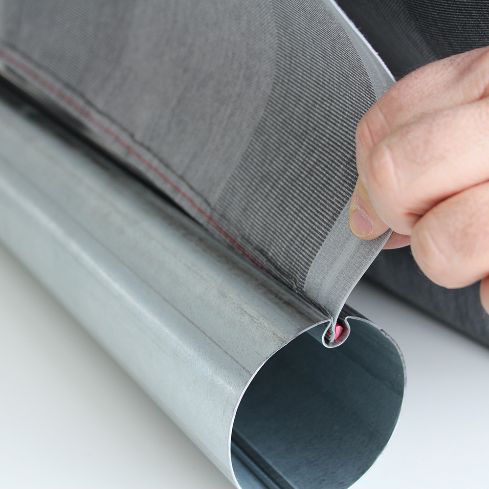 If a hard material keder is used, this has the advantage that a fi xation in the end profi le can be produced. Precise cutting to length of the hard material keder prevents migration between the end caps in the end profi le, both in the awning and in the vertical blind. Soft materials can be tensioned as required and fi xed appropriately in the piping alley. The result is a signifi cant reduction in wrinkling.