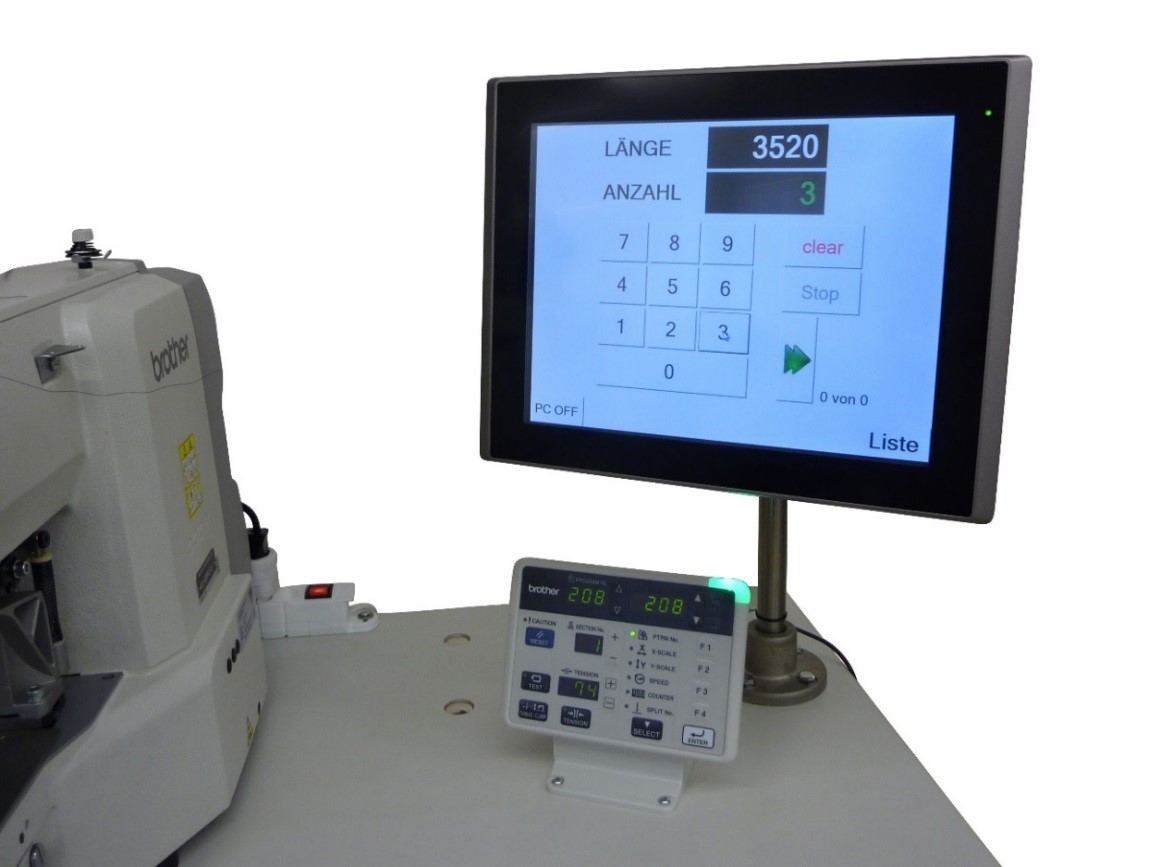 If the lifttape cutter and automatic bartacker are combined at one workstation, a touch panel with integrated PC can be connected to the cutting machine as an expandable option. With this PC, different jobs can be stored or read in and quickly retrieved. This increases productivity and efficiency.