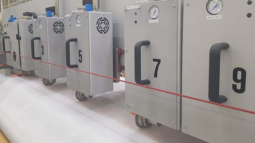 The only ultrasonic quilting and cutting machine capable to produce duvets of 150 to 750 grams per square meter in a commercial quality while maintaining high productivity. A compensator between quilting machine and Panelmaster QuiltLine ensures a continuous and independent production. For duvets the machine is able to imitate a binding on all for edges by the use of a special welding geometry so that the duvet is ready prepared for the end customer. Optional an automatic label insertion is available to position, cut and weld the labels on the duvets.