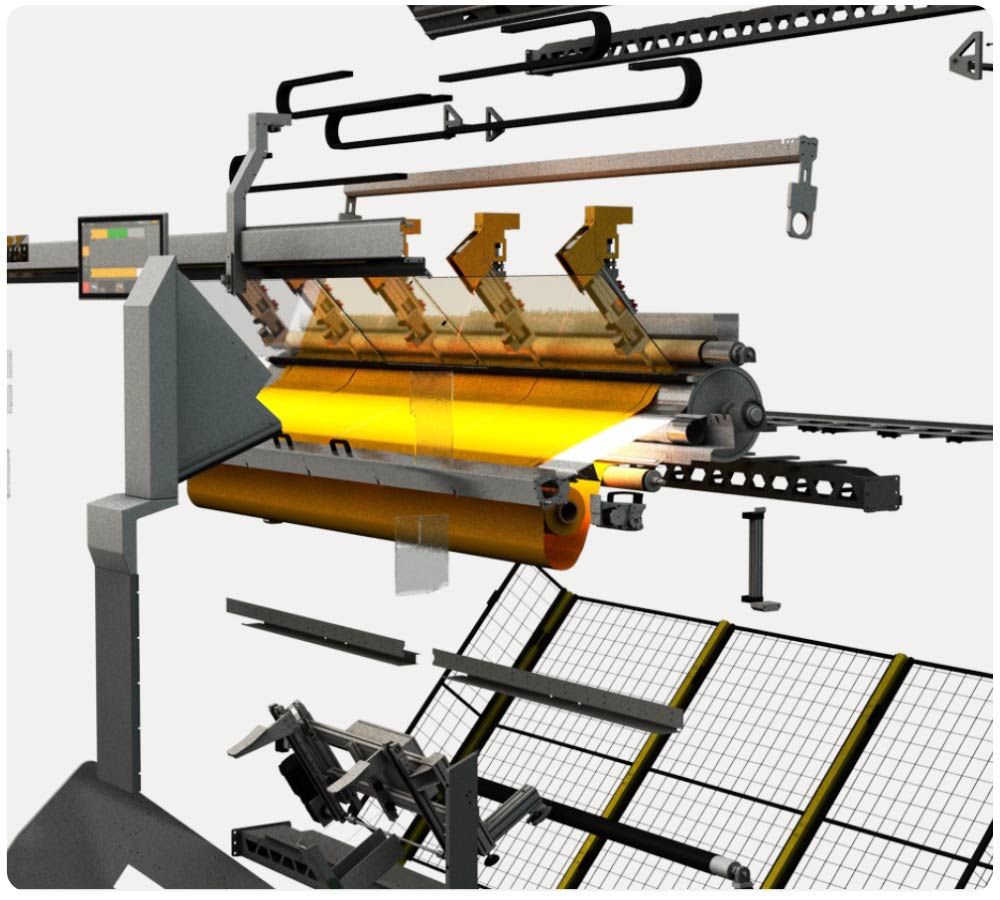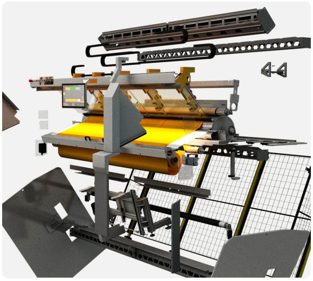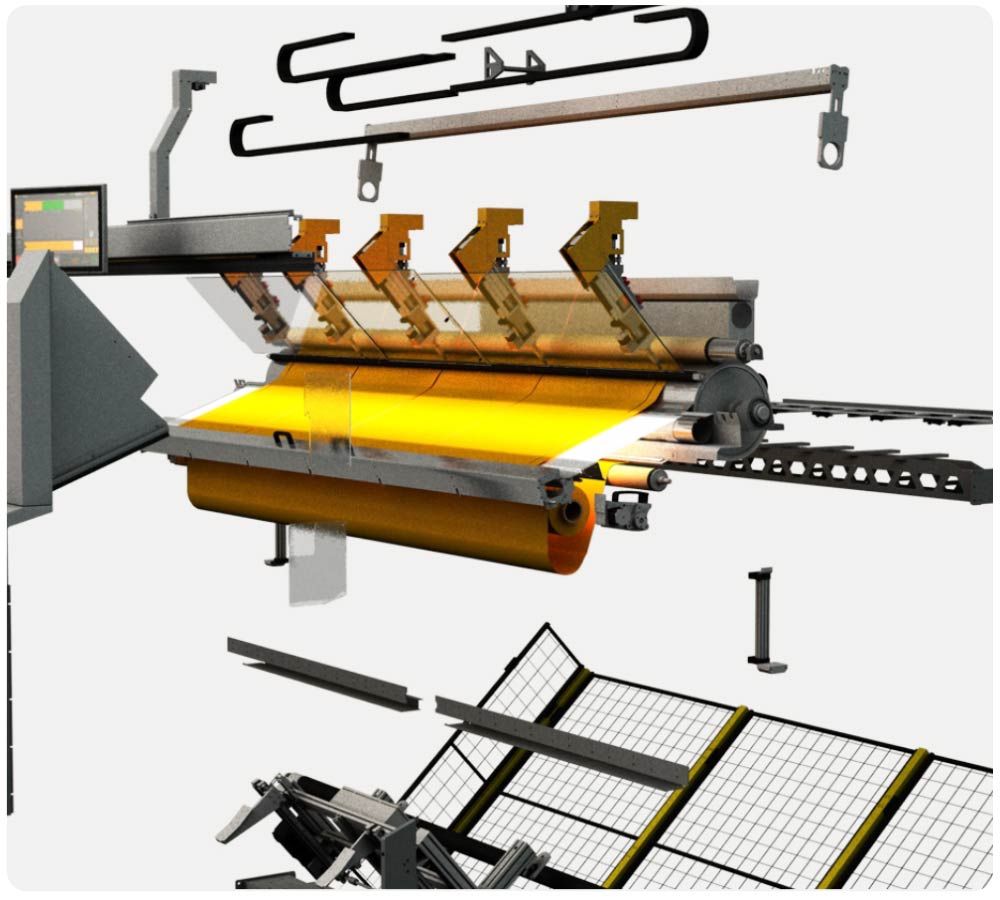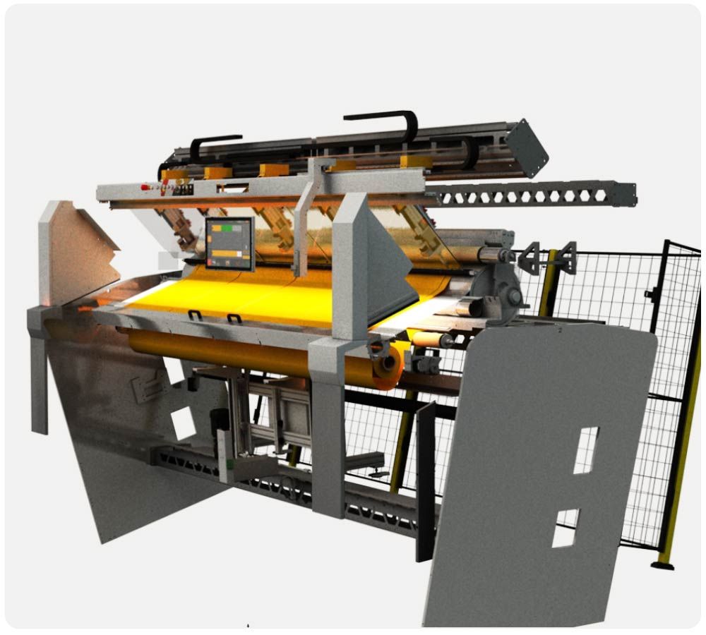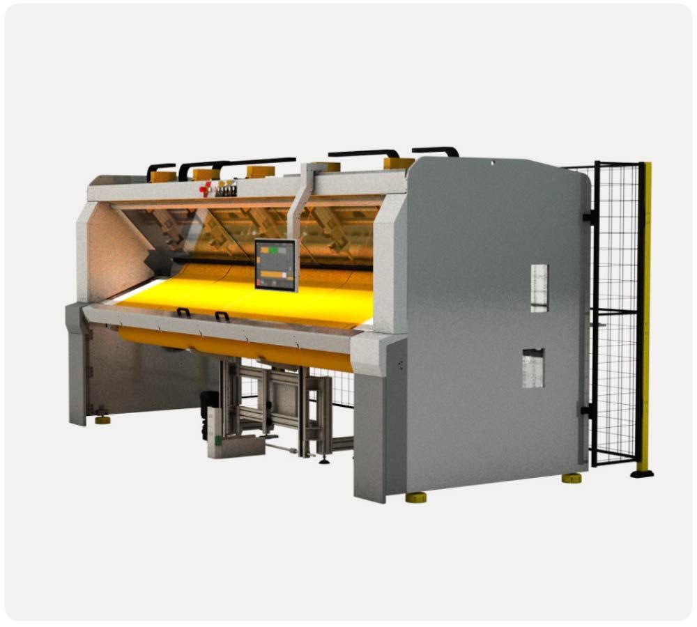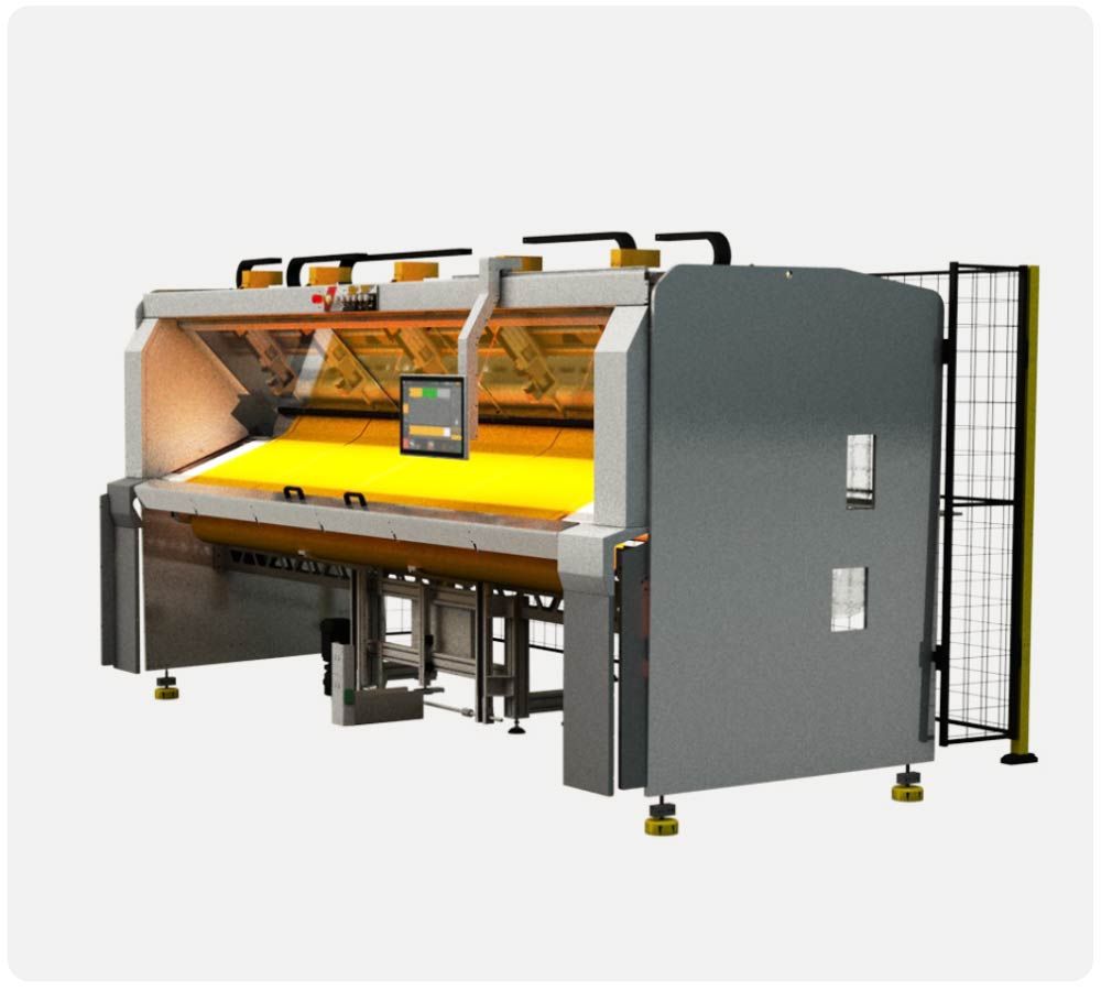 Cutting cycle of only 38 seconds inclusive fabric handling process of a screen fabric with the average size of H 2.4m x W 2m.